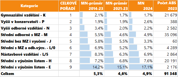 · Střední vzdělání s výučním listem – kategorie vzdělání E