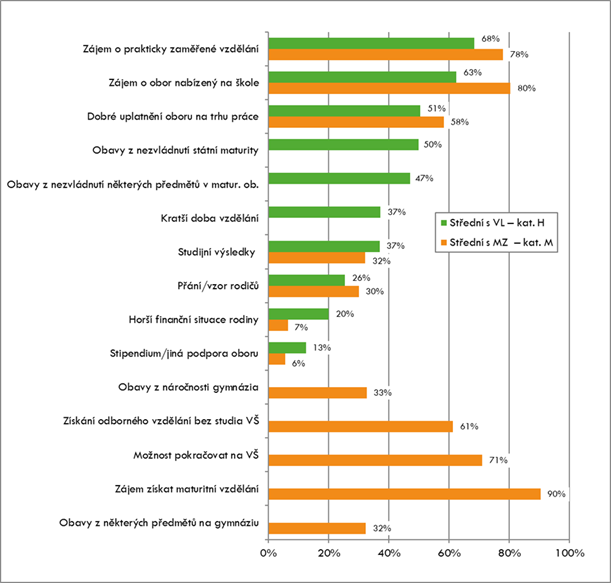 gymnázia (jen 16,7 % oproti 32,7 %). Méně častou motivaci, a to