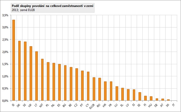 V EU28 bylo v roce 2013 v této skupině povolání zaměstnáno zhruba 2,0 miliony osob. V EU28 tato skupina povolání tvoří 1,0 % ze všech zaměstnaných, tedy o 0,3 procentních bodů méně, než je podíl této skupiny povolání na zaměstnaných v ČR.