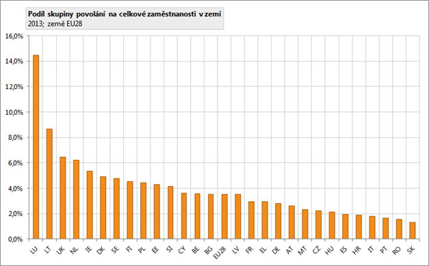V EU28 bylo v roce 2013 v této skupině povolání zaměstnáno zhruba 7,6 milionu osob. V EU28 tato skupina povolání tvoří 3,5 % ze všech zaměstnaných, tedy o 1,3 procentních bodů více, než je podíl této skupiny povolání na zaměstnaných v ČR.