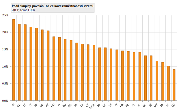 V EU28 bylo v roce 2013 v této skupině povolání zaměstnáno zhruba 3,5 milionu osob. V EU28 tato skupina povolání tvoří 1,6 % ze všech zaměstnaných, tedy o 0,6 procentních bodů méně, než je podíl této skupiny povolání na zaměstnaných v ČR.