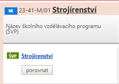 Pro srovnání nabídek více škol můžete využít náš porovnávač. U vybrané školy a oboru stačí kliknout na tlačítko Porovnat, čímž se tento výběr přidá do seznamu vybraných nabídek (přidávat lze libovolné množství oborů jednotlivých škol). Srovnání vybraných nabídek lze tisknout nebo uložit jako dokument. Na jednom místě budete mít porovnání informací o školách (velikost, vybavení apod), informací o oboru (vyšší školného, počtu přihlášených a přijatých v předchozím školním roce apod.), informací o přijímacím řízení (kritéria přijímání, termíny přijímacích zkoušek) a informací o výuce (vyučované jazyky, možnosti stipendia apod.).