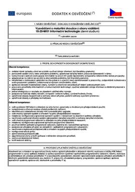 V dodatku k osvědčení jsou uvedené vaše obecné a odborné kompetence, které jste získali na střední škole, a také vaše možné profesní uplatnění. Dále dodatek obsahuje informaci o úrovni kvalifikace absolventa, mj. podle Evropského rámce kvalifikací (zkratka EQF).