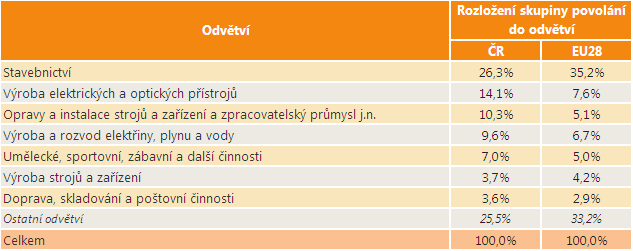 Vzhledem k uvedenému rozložení zaměstnaných osob do jednotlivých odvětví je v ČR odvětvová koncentrace této skupiny povolání v porovnání s ostatními skupinami povolání nízká.