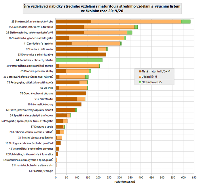 Šíři vzdělávací nabídky středních škol neboli počet možností, z nichž je v celé České republice reálně možné vybírat, nejlépe dokládá počet školoborů (tj. počet realizovaných kombinací školy a oboru vzdělání), v nichž probíhá výuka 1. ročníků (denní i jiné formy studia).