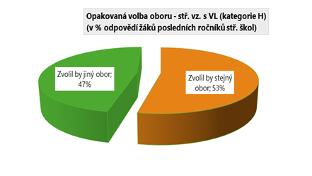 Celková spokojenost žáků učebních oborů s vybraným oborem, vyjádřená na základě tzv. míry identifikace s oborem, není příliš vysoká. Přibližně 53 % žáků posledních ročníků učebních oborů kategorie H uvedlo, že by si znovu vybrali stejný obor. Naopak přibližně 47 % by raději zvolilo jiný obor.