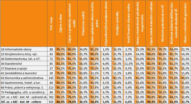 zájem o obor (58,1 %) a na třetím dobré uplatnění na trhu práce (48,8 %),