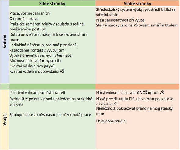 K silným stránkám studia na VOŠ z pohledu absolventů těchto škol patří:
