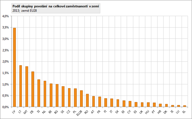 V EU28 bylo v roce 2013 v této skupině povolání zaměstnáno zhruba 1,6 milionu osob. V EU28 tato skupina povolání tvoří 0,7 % ze všech zaměstnaných, tedy o 0,1 procentních bodů méně, než je podíl této skupiny povolání na zaměstnaných v ČR.