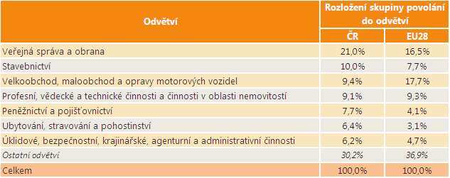 Rozložení skupiny povolání v odvětvích