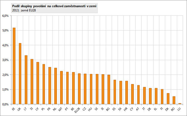V EU28 bylo v roce 2013 v této skupině povolání zaměstnáno zhruba 4,5 milionu osob. V EU28 tato skupina povolání tvoří 2,1 % ze všech zaměstnaných, tedy stejně, jako je podíl této skupiny povolání na zaměstnaných v ČR.
