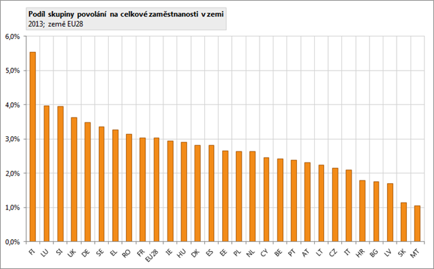 V EU28 bylo v roce 2013 v této skupině povolání zaměstnáno zhruba 6,5 milionu osob. V EU28 tato skupina povolání tvoří 3,0 % ze všech zaměstnaných, tedy o 0,8 procentních bodů více, než je podíl této skupiny povolání na zaměstnaných v ČR.