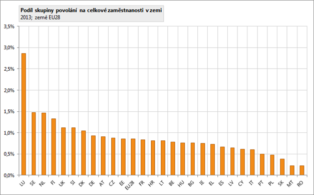 V EU28 bylo v roce 2013 v této skupině povolání zaměstnáno zhruba 1,8 milionu osob. V EU28 tato skupina povolání tvoří 0,9 % ze všech zaměstnaných, tedy stejně, jako je podíl této skupiny povolání na zaměstnaných v ČR.