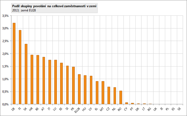 V EU28 bylo v roce 2013 v této skupině povolání zaměstnáno zhruba 2,5 milionu osob. V EU28 tato skupina povolání tvoří 1,2 % ze všech zaměstnaných, tedy o 0,5 procentních bodů více, než je podíl této skupiny povolání na zaměstnaných v ČR.