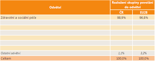 Rozložení skupiny povolání v odvětvích