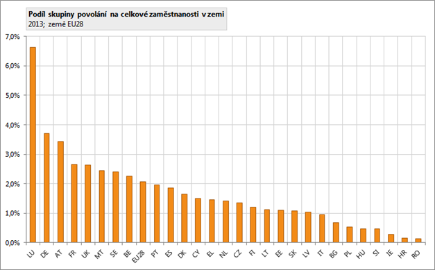 V EU28 bylo v roce 2013 v této skupině povolání zaměstnáno zhruba 4,4 milionu osob. V EU28 tato skupina povolání tvoří 2,1 % ze všech zaměstnaných, tedy o 0,7 procentních bodů více, než je podíl této skupiny povolání na zaměstnaných v ČR.