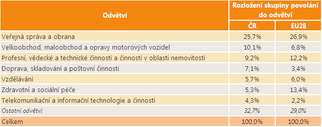 Vzhledem k uvedenému rozložení zaměstnaných osob do jednotlivých odvětví je v ČR odvětvová koncentrace této skupiny povolání v porovnání s ostatními skupinami povolání velmi nízká.
