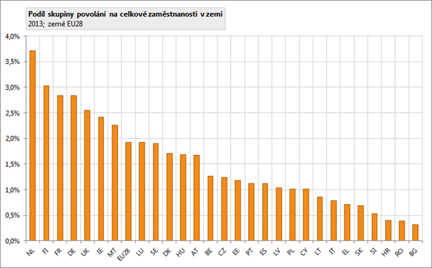 V EU28 bylo v roce 2013 v této skupině povolání zaměstnáno zhruba 4,1 milionu osob. V EU28 tato skupina povolání tvoří 1,9 % ze všech zaměstnaných, tedy o 0,7 procentních bodů více, než je podíl této skupiny povolání na zaměstnaných v ČR.