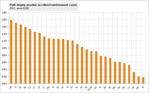 V EU28 bylo v roce 2013 v této skupině povolání zaměstnáno zhruba 2,0 milionu osob. V EU28 tato skupina povolání tvoří 0,9 % ze všech zaměstnaných, tedy o 0,6 procentních bodů méně, než je podíl této skupiny povolání na zaměstnaných v ČR.