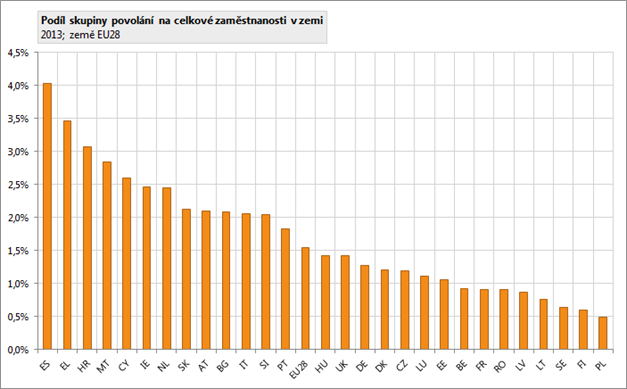 V EU28 bylo v roce 2013 v této skupině povolání zaměstnáno zhruba 3,3 milionu osob. V EU28 tato skupina povolání tvoří 1,6 % ze všech zaměstnaných, tedy o 0,4 procentních bodů více, než je podíl této skupiny povolání na zaměstnaných v ČR.