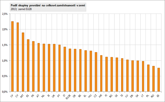 V EU28 bylo v roce 2013 v této skupině povolání zaměstnáno zhruba 3,0 milionu osob. V EU28 tato skupina povolání tvoří 1,4 % ze všech zaměstnaných, tedy o 0,1 procentních bodů více, než je podíl této skupiny povolání na zaměstnaných v ČR.