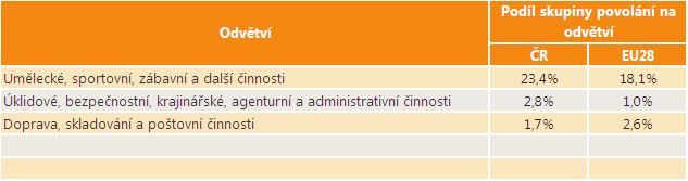 Vzhledem k uvedenému rozložení zaměstnaných osob do jednotlivých odvětví je v ČR odvětvová koncentrace této skupiny povolání v porovnání s ostatními skupinami povolání vysoká.