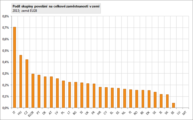 V EU28 bylo v roce 2013 v této skupině povolání zaměstnáno zhruba 630 tisíc osob. V EU28 tato skupina povolání tvoří 0,3 % ze všech zaměstnaných, tedy o 0,1 procentních bodů méně, než je podíl této skupiny povolání na zaměstnaných v ČR.