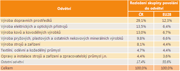 Největší část osob ze skupiny povolání Ostatní řemeslní pracovníci a pracovníci v dalších oborech je v ČR zaměstnána v odvětví Výroba dopravních prostředků. Druhým nejvýznamnějším zaměstnavatelem je pro tuto skupinu povolání odvětví Výroba elektrických a optických přístrojů. Dalším významným zaměstnavatelem je pro tuto skupinu povolání odvětví Výroba kovů a kovodělných výrobků, dále Výroba pryžových, plastových a ostatních nekovových minerálních výrobků a také Výroba strojů a zařízení. Následující tabulka porovnává, jaká je distribuce zaměstnaných osob z této skupiny povolání do odvětví v ČR a v EU28.