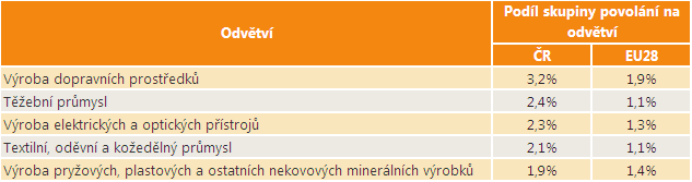 Vzhledem k uvedenému rozložení zaměstnaných osob do jednotlivých odvětví je v ČR odvětvová koncentrace této skupiny povolání v porovnání s ostatními skupinami povolání nízká.