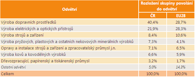 Vzhledem k uvedenému rozložení zaměstnaných osob do jednotlivých odvětví je v ČR odvětvová koncentrace této skupiny povolání v porovnání s ostatními skupinami povolání průměrná.