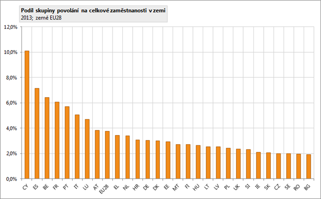 V EU28 bylo v roce 2013 v této skupině povolání zaměstnáno zhruba 8,0 milionu osob. V EU28 tato skupina povolání tvoří 3,7 % ze všech zaměstnaných, tedy o 1,7 procentních bodů více, než je podíl této skupiny povolání na zaměstnaných v ČR.