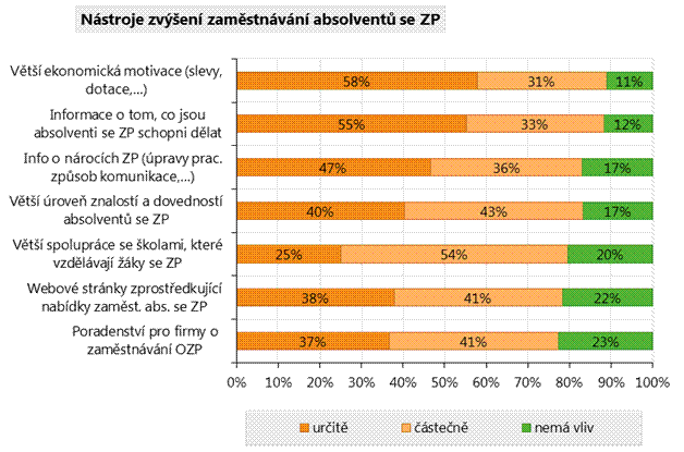 Hlavní nástroje, které by podle názoru zaměstnavatelů mohly posílit zájem o zaměstnávání absolventů se ZP a posílit jejich pozici na trhu práce: |