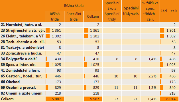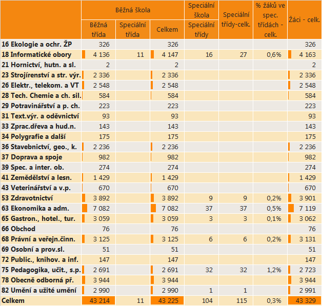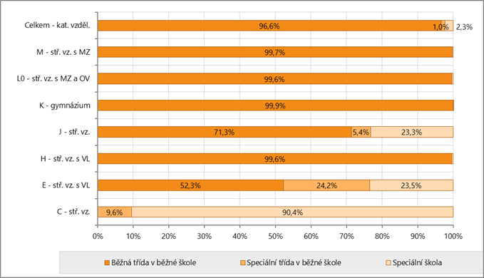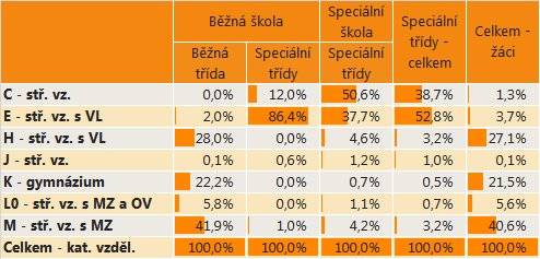 kolem 23 % žáků z této kategorie vzdělání (966 žáků). Vzdělávali se zejména ve