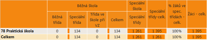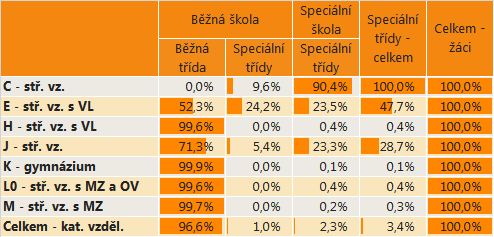podíl žáků ve speciálních třídách pouze 0,3 % (115 žáků).