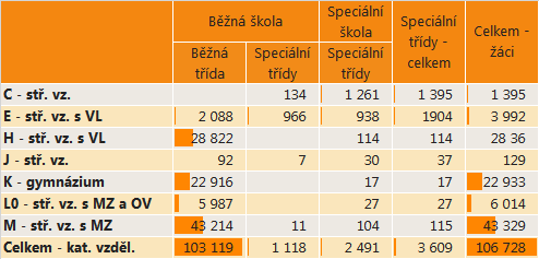 (28 936 žáků) ve speciálních třídách vzdělávalo 0,4 % z nich