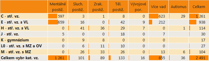 speciálních školách pouze 27 žáků (0,4 % ze žáků kategorie L0). Žáci byli