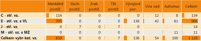o okrajově pak ve třídách pro žáky se závažnými vývojovými poruchami (138 žáků);