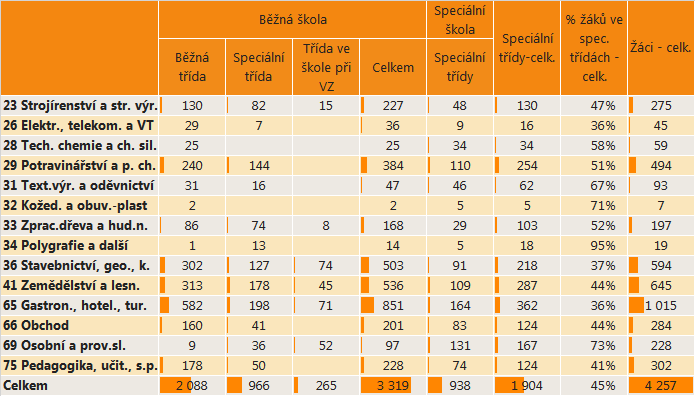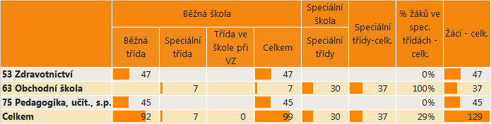 jen 129 žáků. Ve speciálních třídách se tito žáci vzdělávali v oboru 63