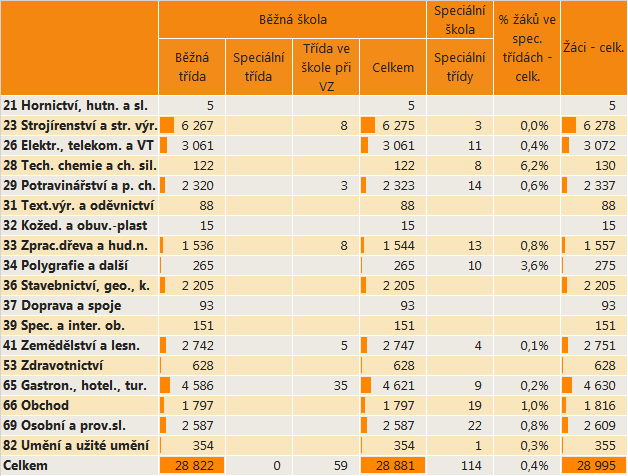 Ve speciálních třídách se dále vzdělávalo 3,2 % žáků učebních oborů